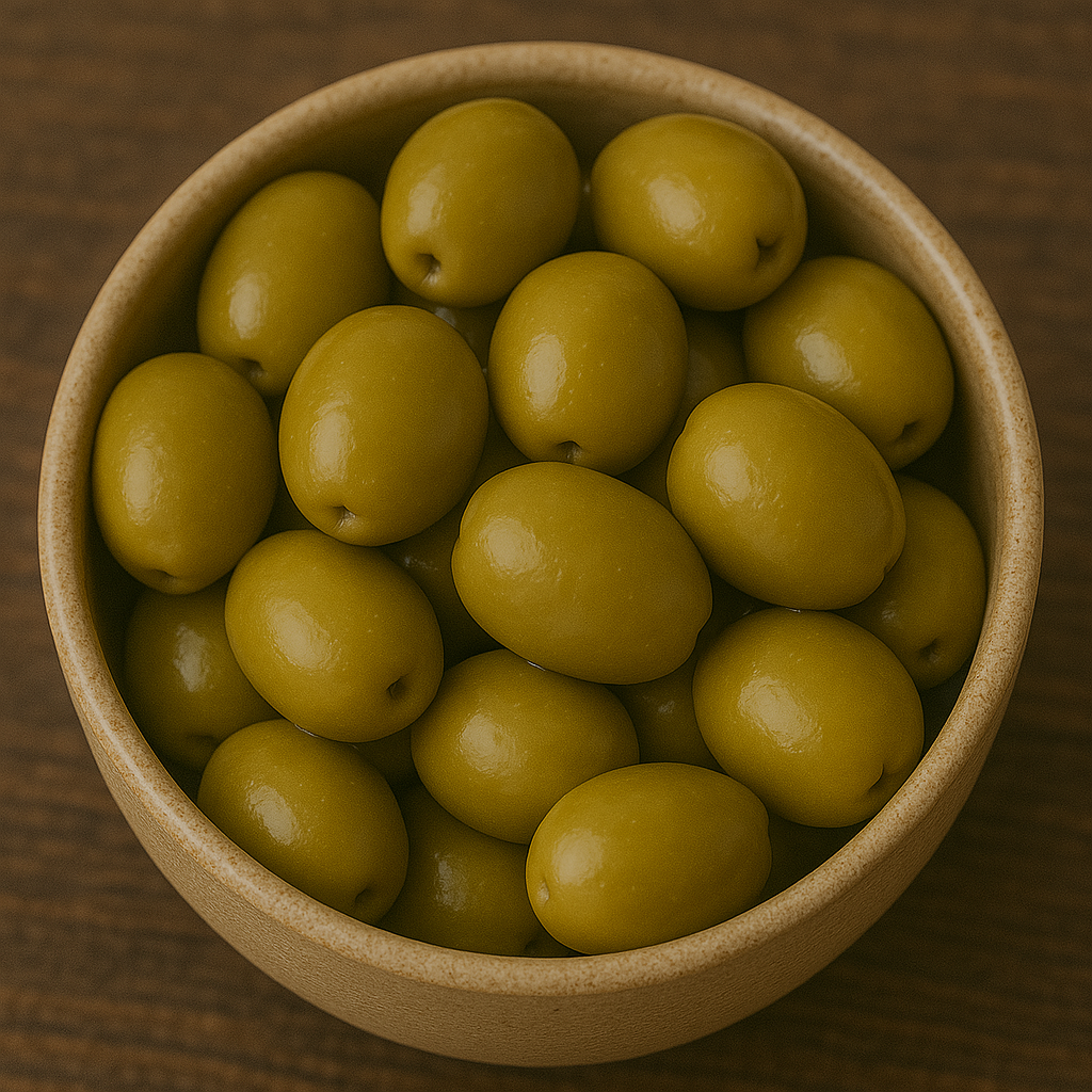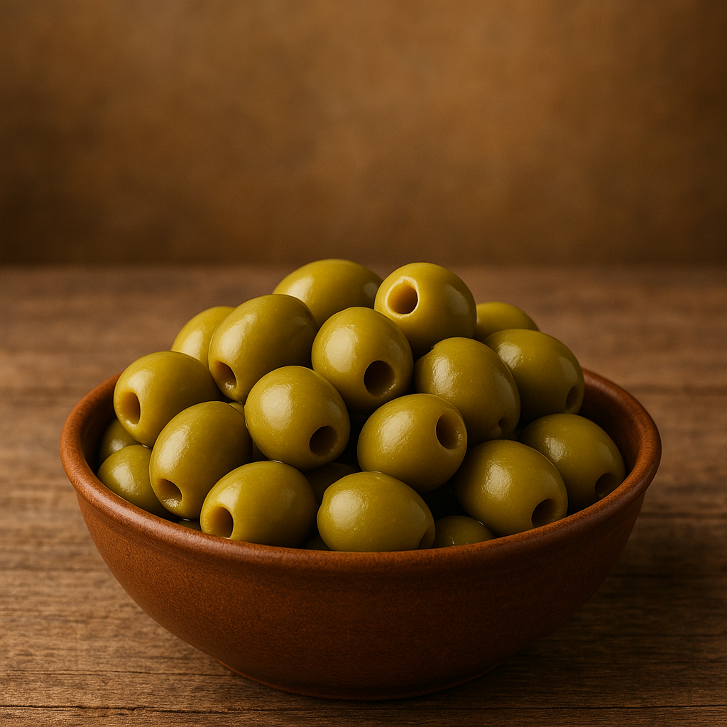 Enjoy the crisp, refreshing taste of our green whole olives, harvested at peak ripeness. Perfect for snacks, charcuterie boards or to lend a bright touch to salads.
